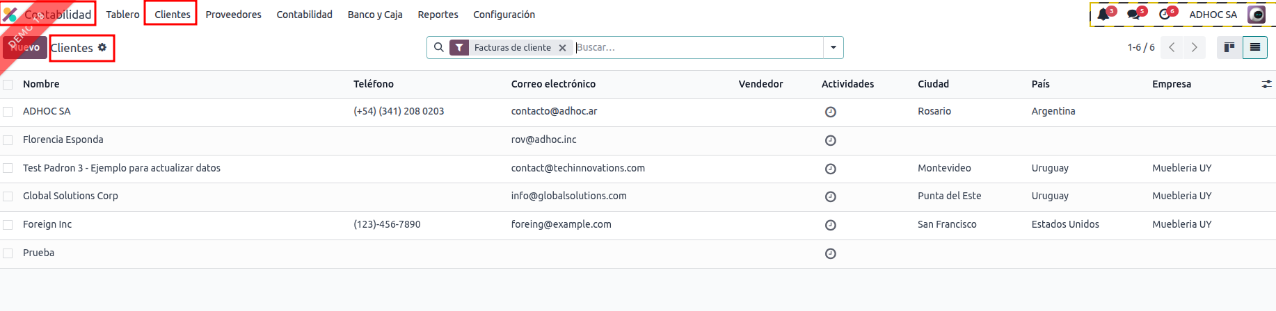 Ingresa a tu base de datos de Odoo by Adhoc, e importa todos los clientes y proveedores que vayas a utilizar.