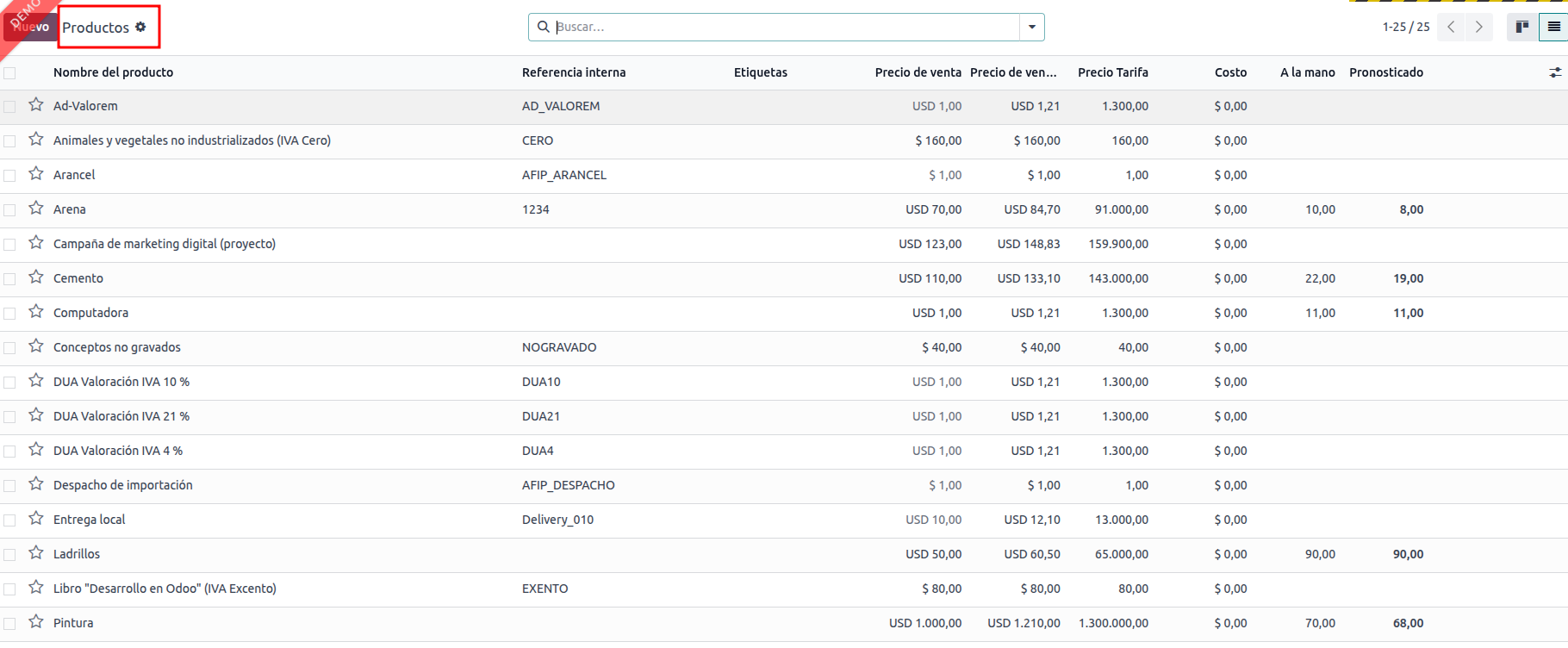 Ingresa a tu base de datos de Odoo by Adhoc, e importa todos los productos que vayas a utilizar.